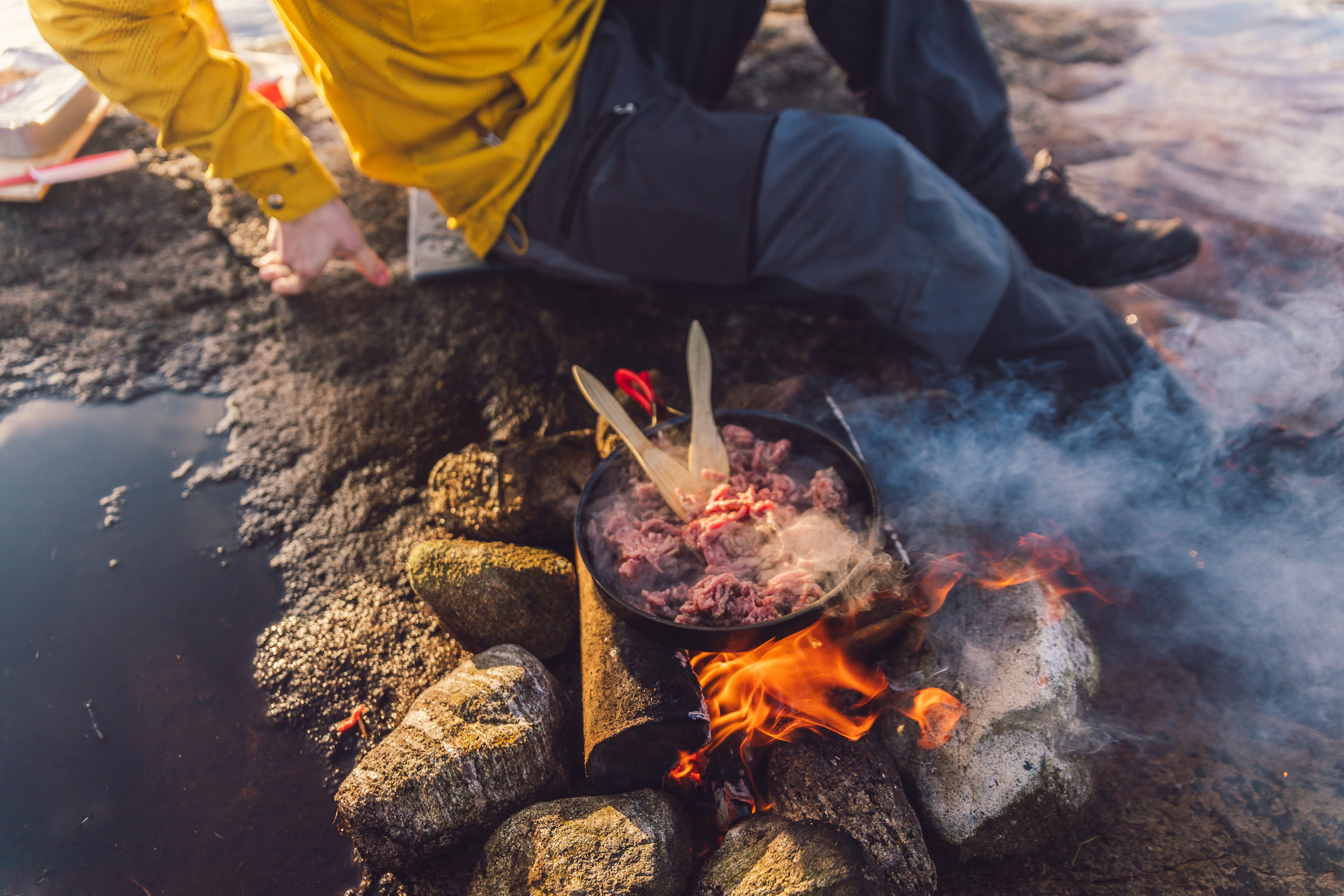Det er faktisk enklere en du skulle tro! Begynn med å steke kjøttdeigen over bålet, tilsett tacokrydderet. Når dette er gjort, tøm den ferdigstekte kjøttdeigen tilbake i pakken en liten stund.