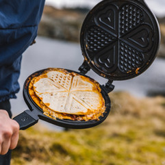 Legg en tortillalefse i et vaffeljern. Fyll på med kjøttdeig, salsa, revet ost, mais og agurk. Avslutt med en tortillalefse på toppen og lukk igjen vaffeljernet.